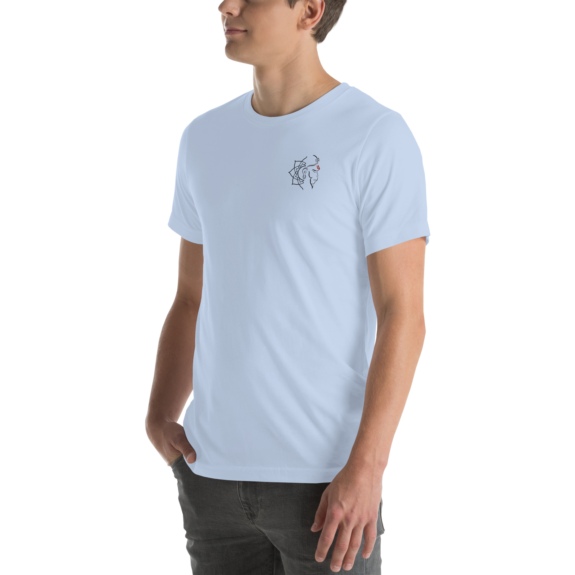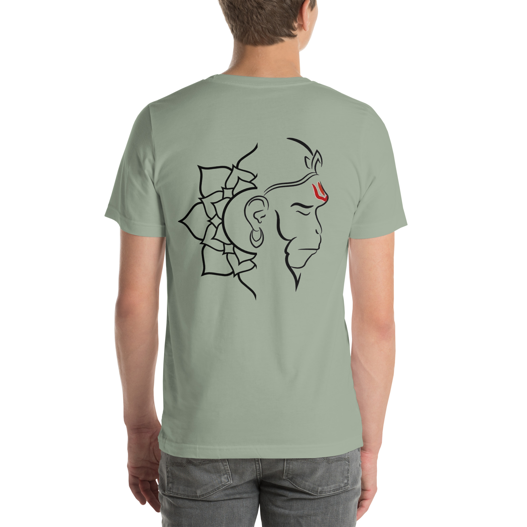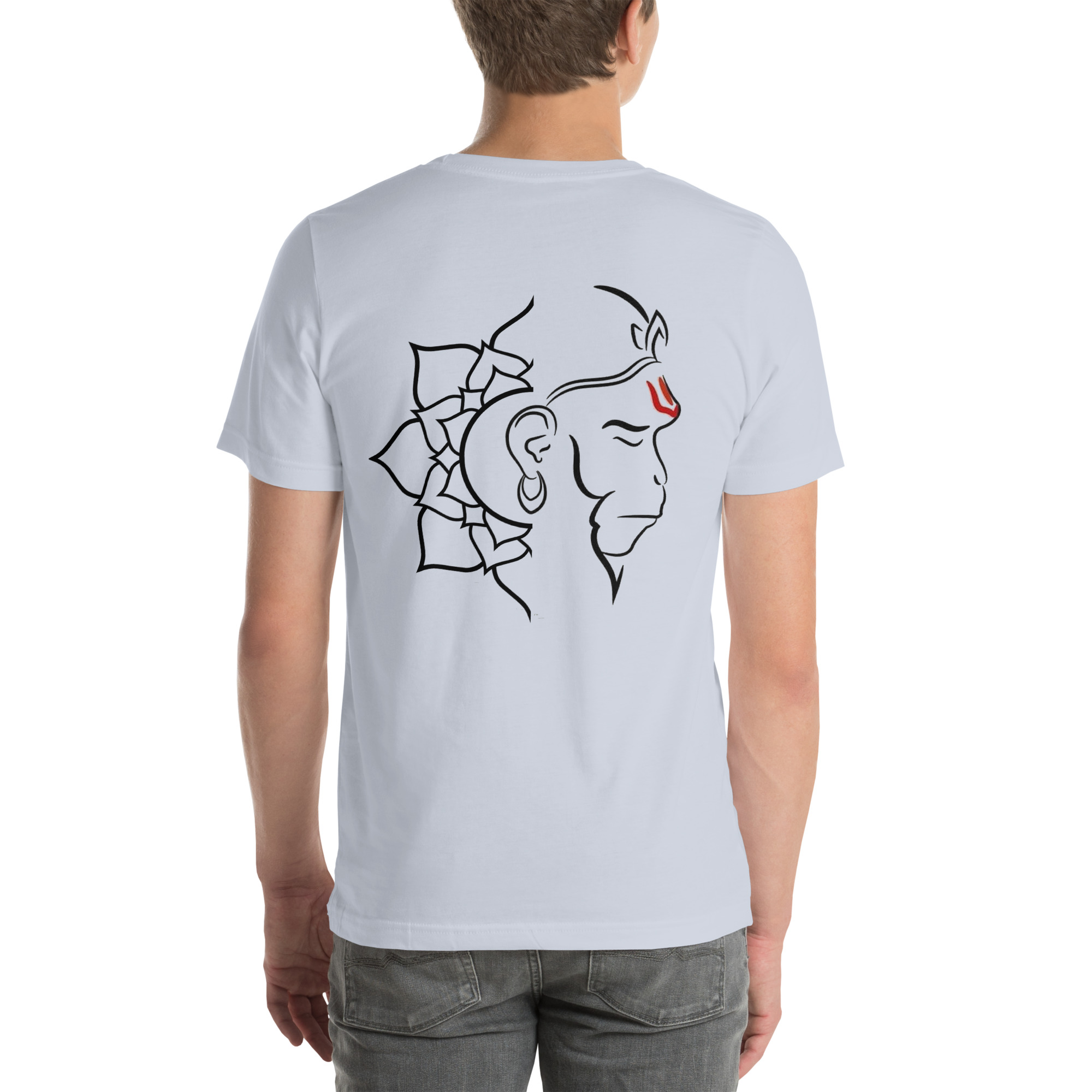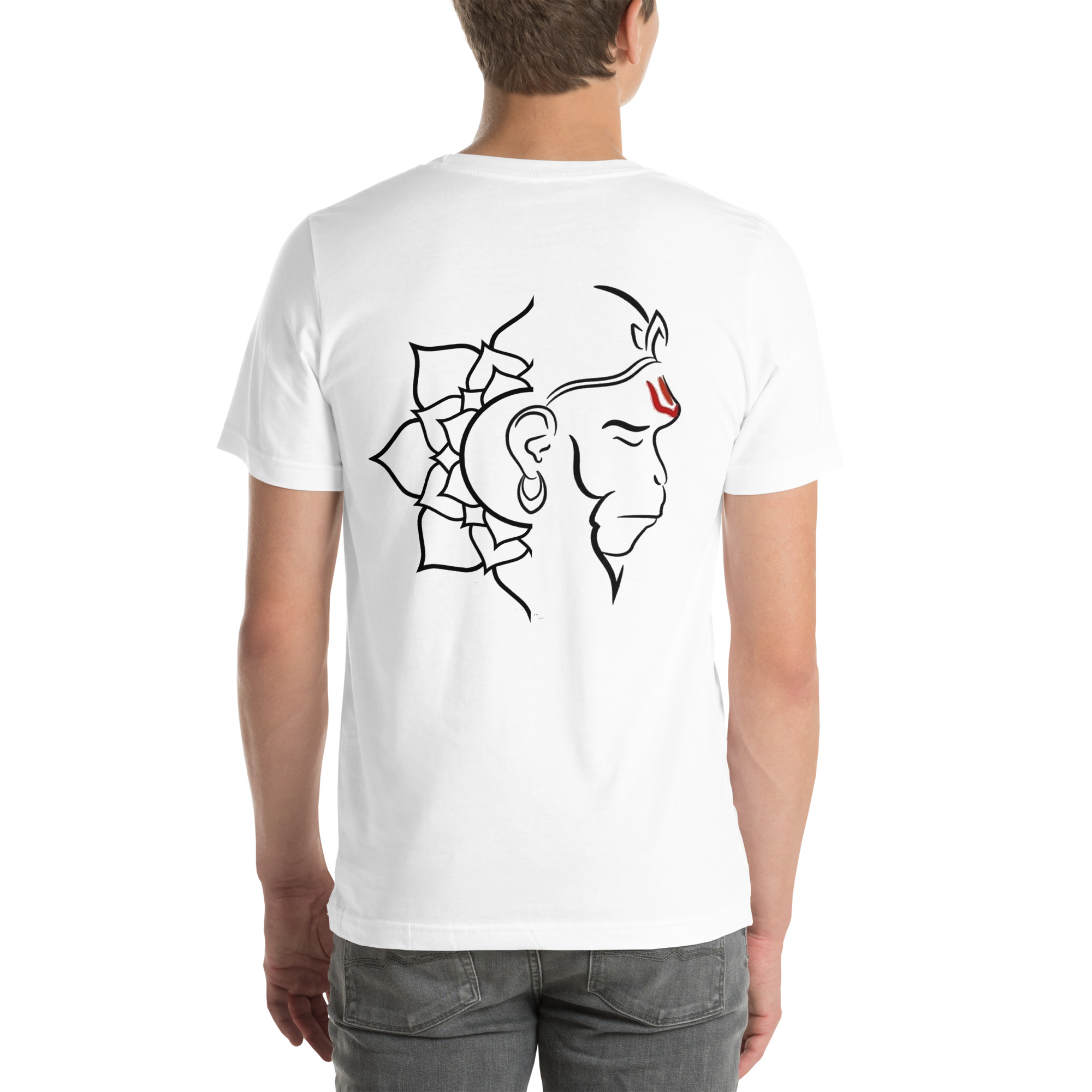 This artwork portrays Lord Hanuman using clean, flowing lines that define his face and features while maintaining a modern and minimalistic appeal. The red marking (tilak) on his forehead symbolizes devotion, strength, and spiritual energy. The design merges traditional religious iconography with contemporary artistic style
